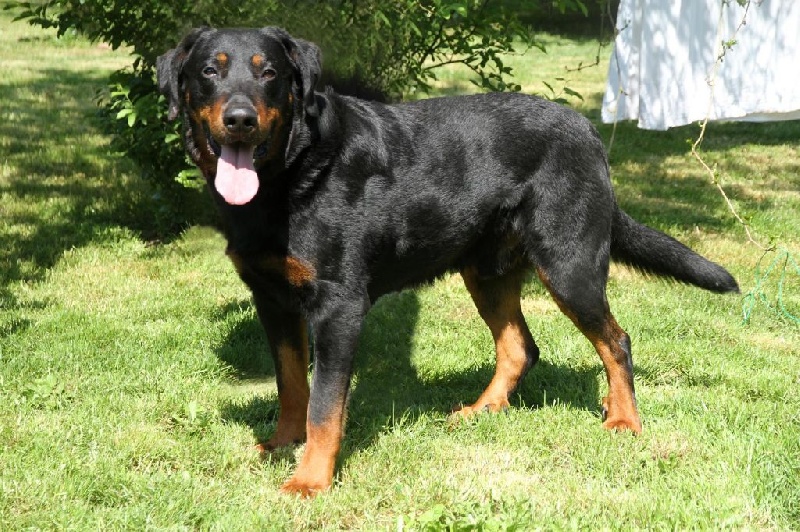 C'est un chien avec une très forte ossature (48kg à 19 mois), et des feux très écureuils.A 16 mois, ses mensurations étaient les suivantes : (régionale de Montendre le 24 mars 2013) tête : 13.5cm/15.5cm/14cm, hauteur au garrot : 69cm, longueur corps : 72cm, périmètre thoracique : 83cm, Test de caractère : 9 / 9 / 9.